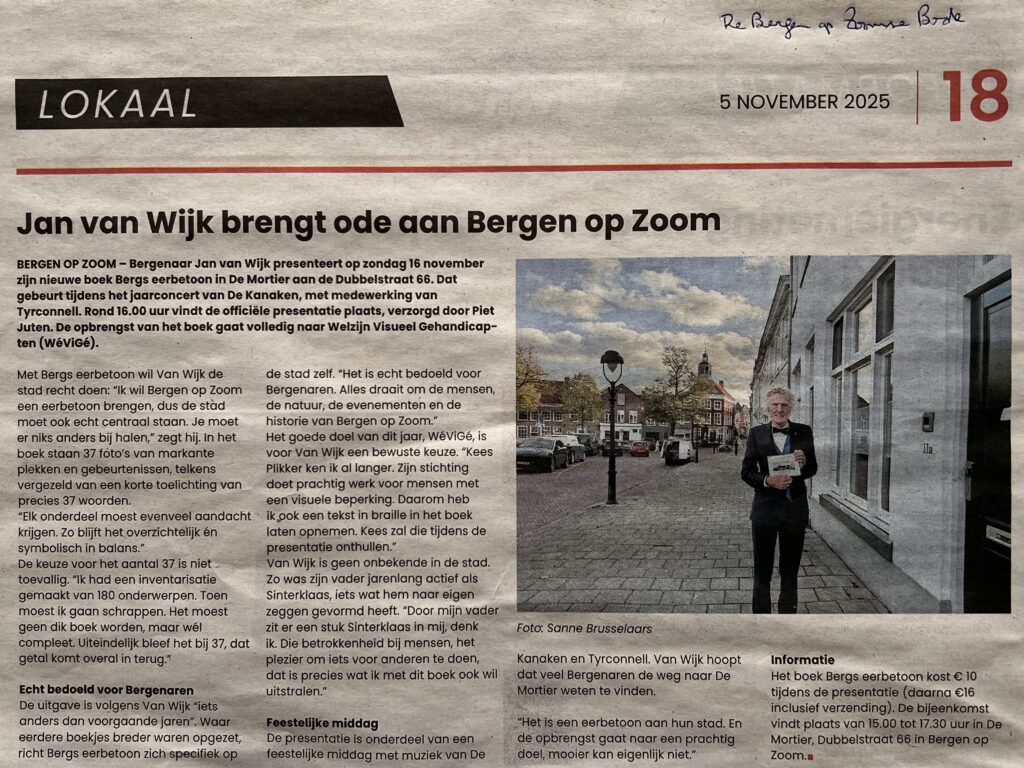 Steeds steunt Jan van Wijk met zijn boeken een goed doel. Deze keer gaat de opbrengst naar de Stichting WéViGé, Welzijn Visueel Gehandicapten, te Bergen op Zoom.